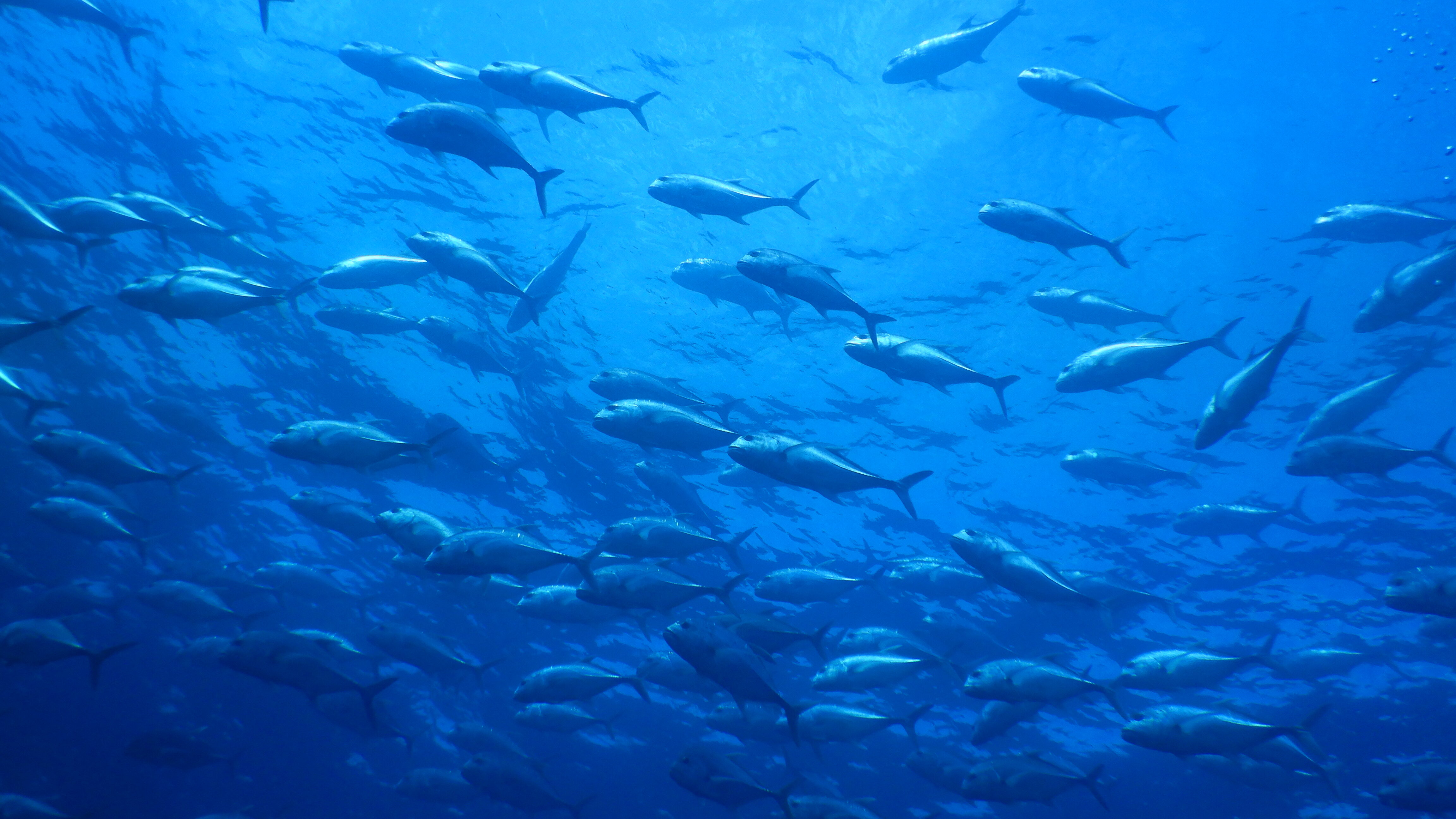 見てくださいギンガメアジのこの量〜〜!水面を見上げた途端この数いてびっくりしました。