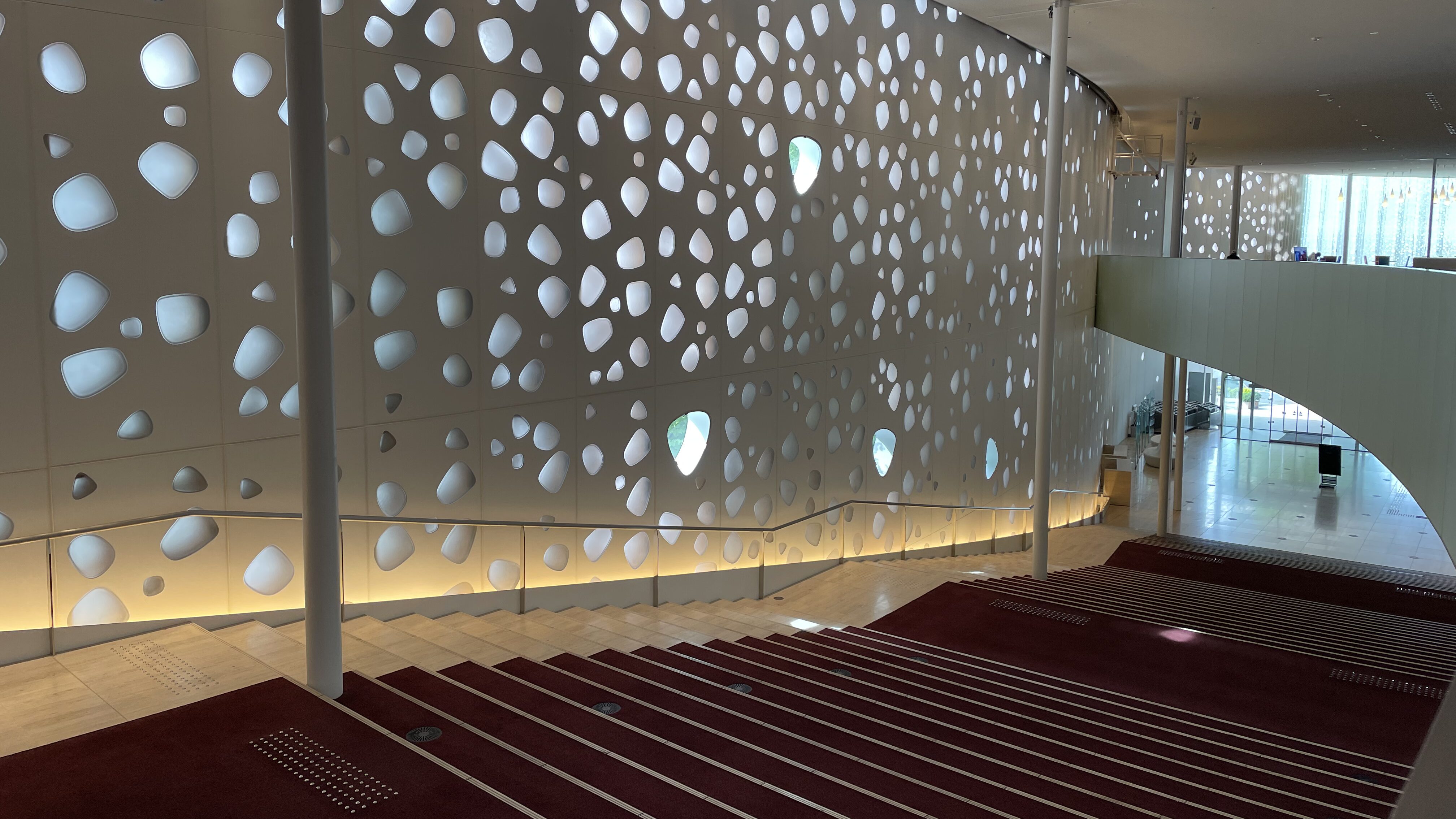 最後に訪れたのは、建築家・伊東豊雄氏が手掛けたまつもと市民芸術館です。 松本市美術館のすぐ近くにあり、建築好きならぜひ立ち寄っていただきたいスポット。